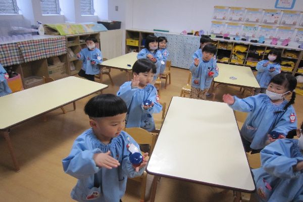 カスタネットで遊びました。歌の合わせて、リズムをたたいてみました!たのしかったね!