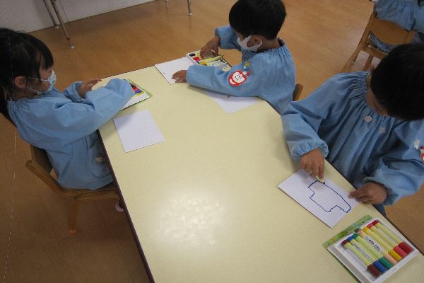 お母さんが好きなものを思い浮かべながら絵を描いたり、