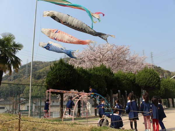 外でたくさん遊び、こいのぼりも気持ちよさそうに泳いでいました♪