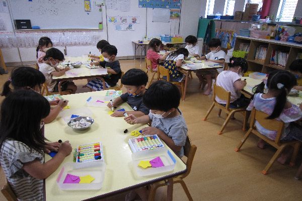 今日は折り紙で彦星さま織姫様の体を作りました☆彡