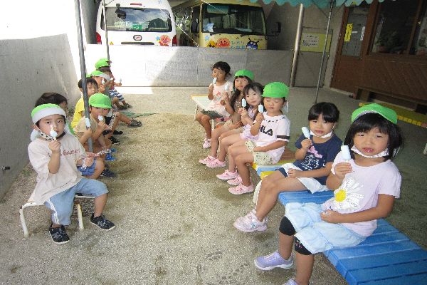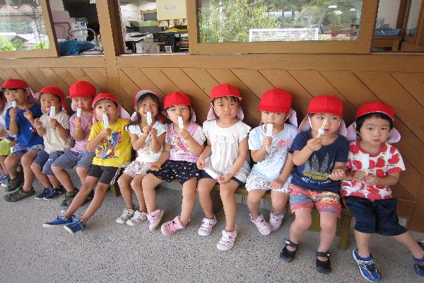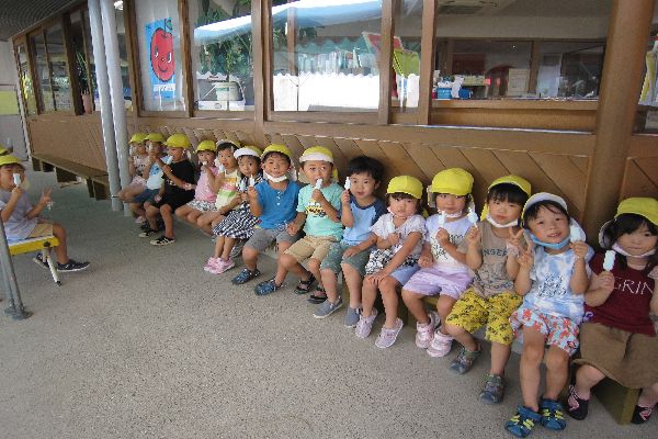 昨日から元気に登園して来てくれました! 夏休みに何をしたかをたくさんお話してくれました☆ おやつに園長先生が用意してくれたアイスも食べました♪ また、月曜日も元気に来てね☆待ってるよ☆