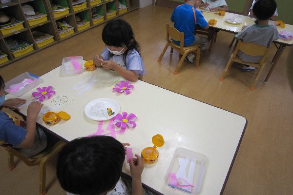 完成した後は自分の好きな色の順番で茎につけました☆彡