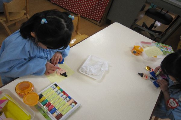 マーカーで顔やお洋服の模様を描きました!