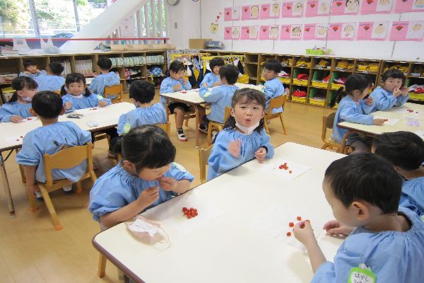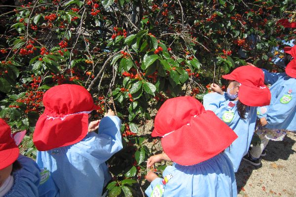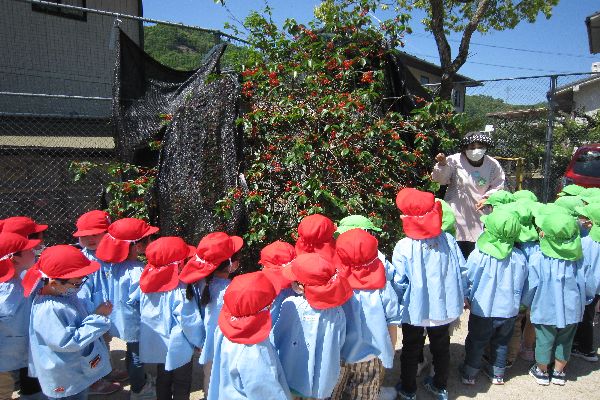 今日は幼稚園の駐車場になっているさくらんぼを収穫しに行きました!