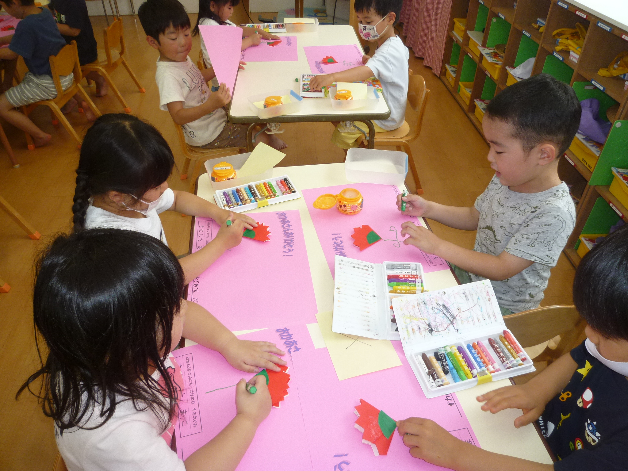 今日はお母さんありがとうの気持ちを込めてカーネーションを作りました!