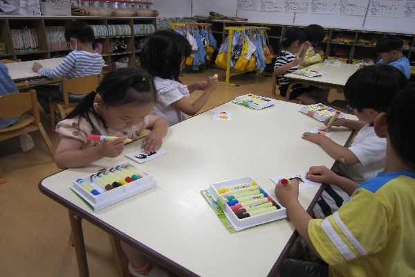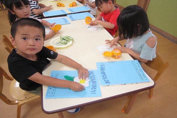 顔のように貼っているお友達もいました!プールで遊ぶの楽しみだね♡