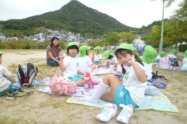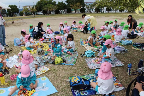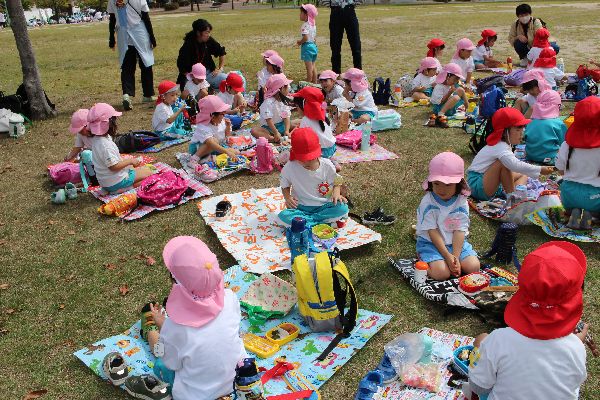 みんなでシートを敷いて食べたお弁当、お菓子もおいしかったね!