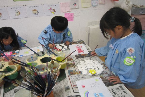 作品展に向けて紙粘土の色塗りをしています!