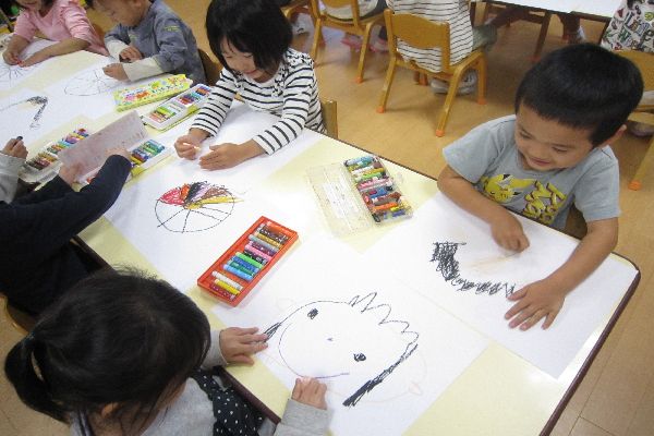 運動会でのかけっこ、パラバルーン、親子競技…一番楽しかったこと、頑張ったことの思い出を絵に描きました☆