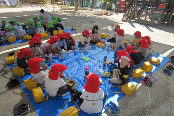 お天気もよかったので、お昼は園庭にシートを敷いて食べました♡