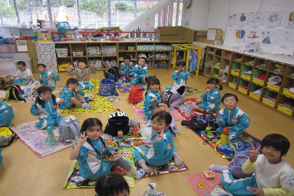 雨が降りそうだったので、お弁当は幼稚園に帰ってから食べました☆