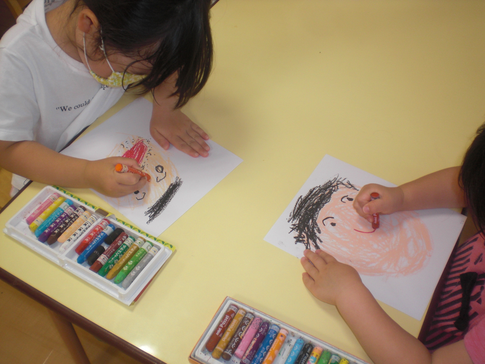 もうすぐ父の日ということで、今日はお父さんの顔を描きました! 「私のお父さんつよいんよ」「やさしいんよ」とお父さん自慢をしていました! みんなとっても頑張っていました★