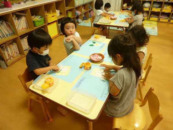今日は、白バラを作りました! 葉っぱいつの間にか2つになるマジックをしました! 「なんで2枚になるんだろう」と不思議そうでしたが みんな頑張って取り組むことができました☆