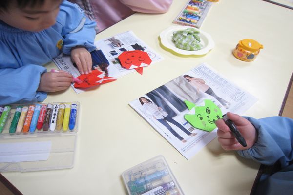 折り紙で鬼ちゃんを作りました。カラフルな鬼ちゃんが出来ました♡