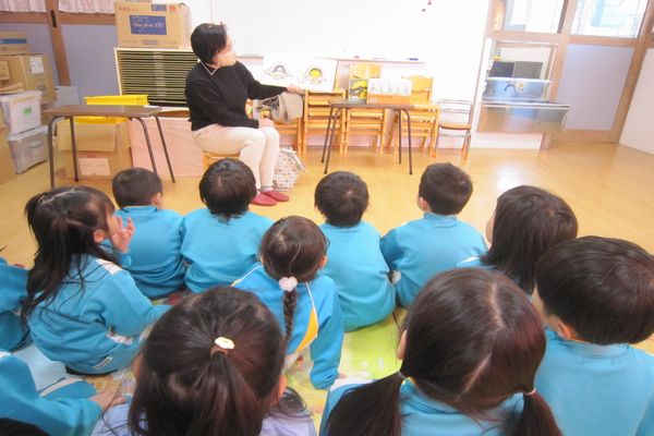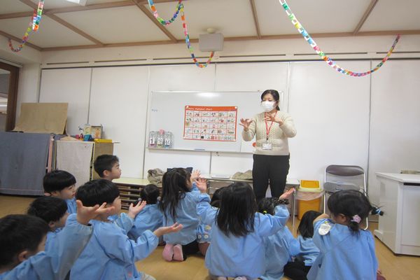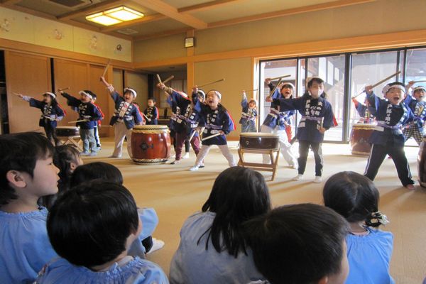 ゆり組は、ほし組さんの和太鼓を見せてもらいに品秀寺に上がりました。