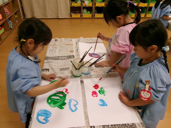 絵の具遊びをしました!自由に筆を使って描きました!動物や好きなキャラクターを描いたり、画用紙いっぱいに色を塗ったり…素敵な絵になりました!