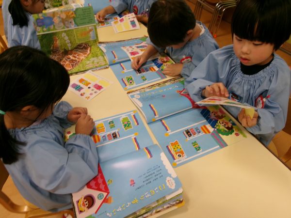 5月の月刊絵本を読みました!ひかりファームで育てているグリンピースとそらまめのページがあり、「下の園庭で見たまめだ!」「もう収穫できるかなあ?」とわくわくしながら読んでいました☆彡こいのぼりのシールも貼って楽しみました!