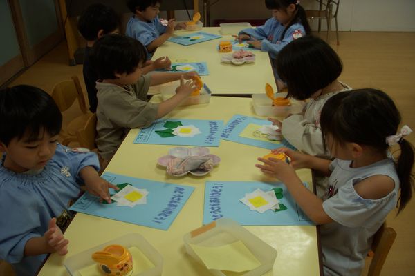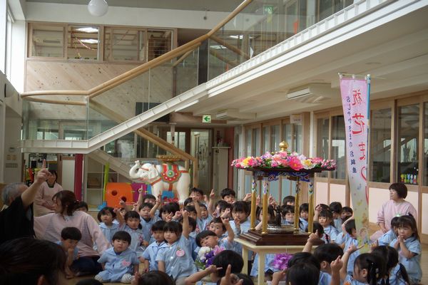 木曜日は花まつりがありました。お釈迦様の誕生をお祝いし、白いゾウを引いたり、甘茶をかけたりしました。実際に甘茶をいただいて「甘ーい!これが空から降ってきたんだね!」と感動していました☆