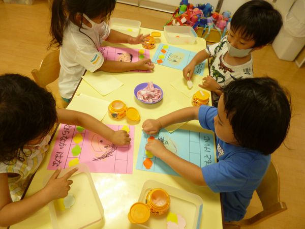 今日はお当番表を作りました! 自分の顔を描いて、あめ玉のシルエットを順番にはりました! 念願のお当番表で、みんな張り切っていました☆彡 お当番になるのが楽しみだね♡
