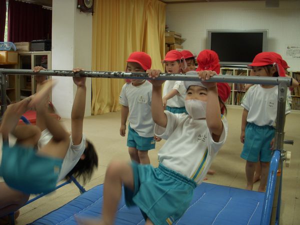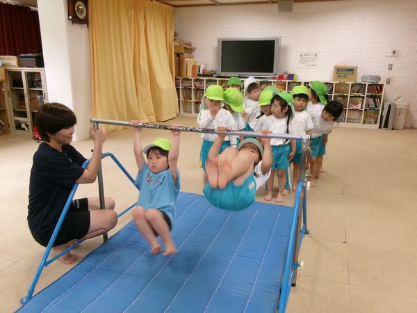 月曜日は体操教室がありました。鉄棒をしっかり握って周ることができました!