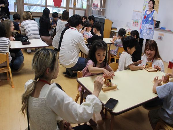 先日の参観日はありがとうございました。新しいクラスにも少しずつ慣れ、のびのびとした姿が見られたのではないかと思います。一緒に製作したのもで遊びながら、素敵な時間になりました。