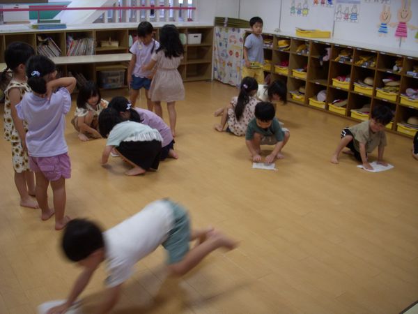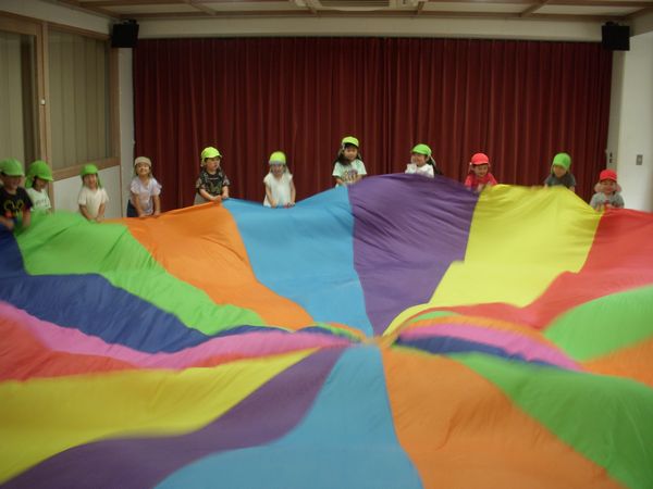 パラバルーンでいろいろな技に挑戦しました☆みんなで力を合わせてできる技に「すご~い!きれい!!」と感動していました!2学期も運動会に向けて楽しんでいこうね!