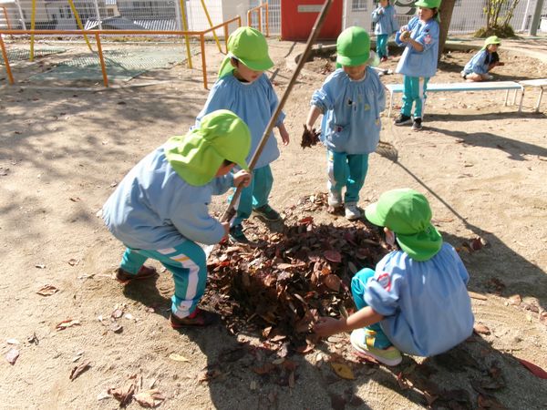毎日落ち葉で遊んで見たり、鬼ごっこをしたり…元気に過ごしています!