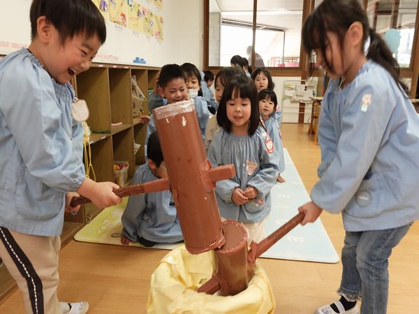 成道会を祝い、みんなでお餅つきをしました。みんなで「よいしょ~!」と餅つきを応援したり、自分の食べる餅を丸めたりしました。お手伝いいただいた地域の方々や保護者の方々、ありがとうございました!