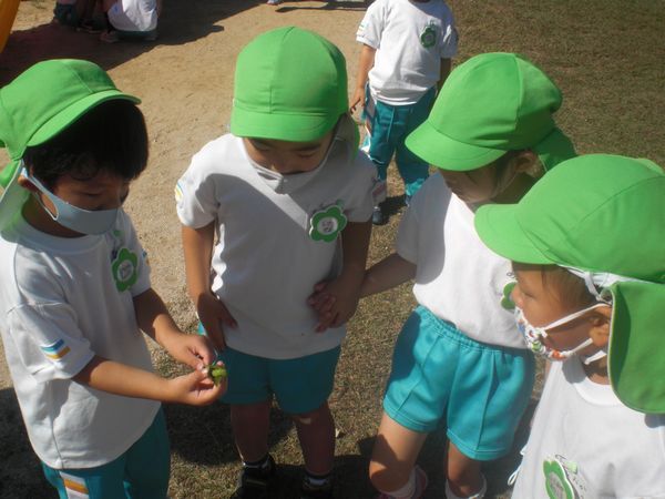 写真では、少~し見えにくいですが、『あおむし』を発見して大興奮でした。