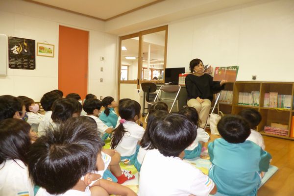 お話会では、「びっくり、まつぼっくり」「うさぎのいえ」「わにわにのおふろ」「るすばん」の4冊の絵本を読んでくださいました!