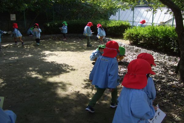 秋を見つけるビンゴカードを持って公園に行きました!