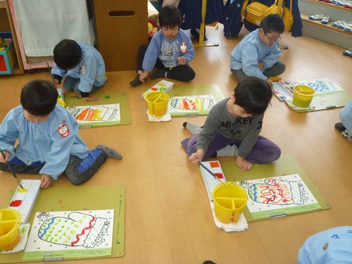 今日は、絵の具遊びで、手袋にすてきなもようを描きました。好きな色を使って、いろんな手袋ができました♪楽しかったね♡