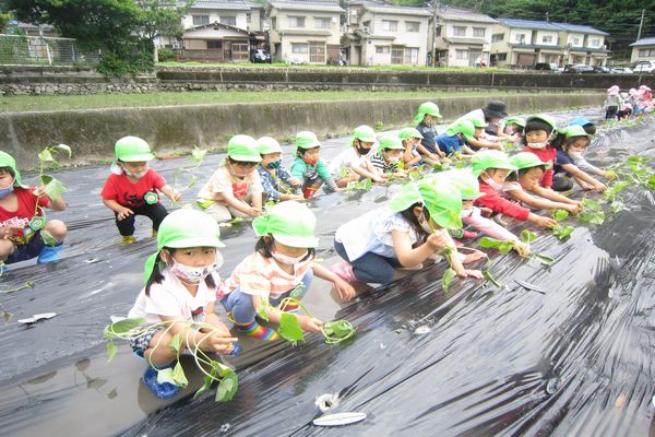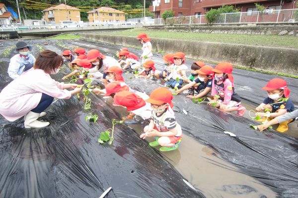 今年初めて芋の苗を見る子も多く、
