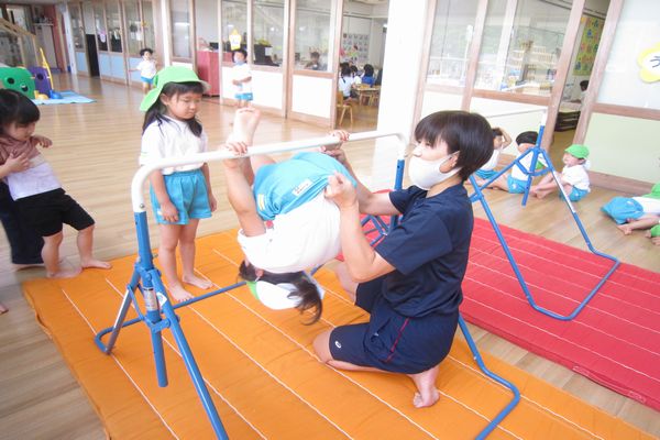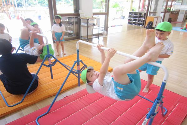 今日の体操教室は、鉄棒でした。 まずは、ぶらさがって『ぶ~らん ぶ~らん』