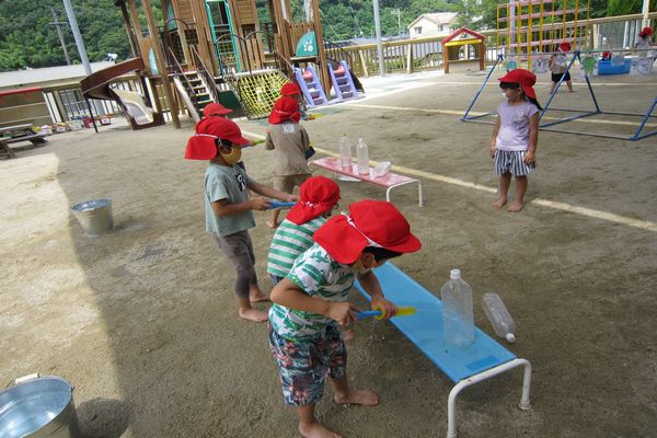 今日も水鉄砲や魚釣り、ペットボトルのおもちゃで遊びました!!