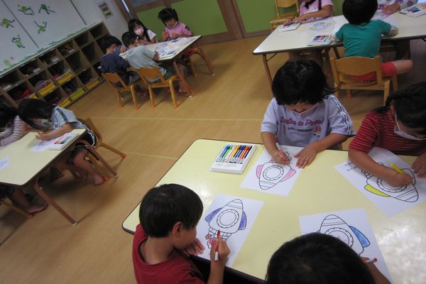 塗りながら、「宇宙に行ってみたいな~。暗いのかな?」と言っている子も