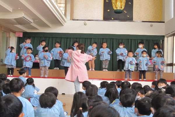 今日は、年少組のお遊戯会の練習を見に行きました!