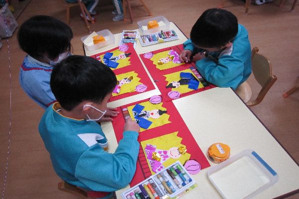 金屏風やぼんぼりも飾ってかわいいおひまさまができました!