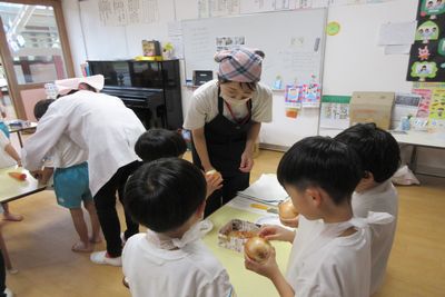 今年度は年長合宿を行うことが出来ました。園児に野菜を切ってもらい、工程を見学してもらうという取り組みを初めて行いました。