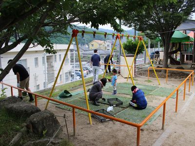 環境部の方とお父さん部の方で、環境整備を行いました。草取りや、園庭や駐車場の土ならし、溝そうじなどをしていただき、園内や駐車場がきれいになりました。暑い中、大変お世話になりました。
