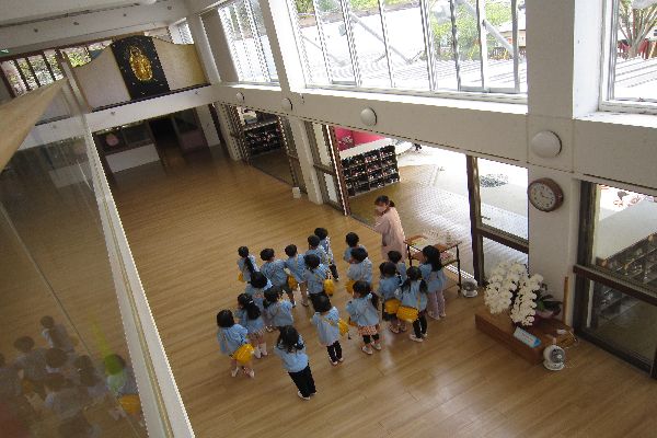 幼稚園に来たら、いつも見守ってくださっている、みほとけさまに朝の挨拶をしてからクラスに入ります。