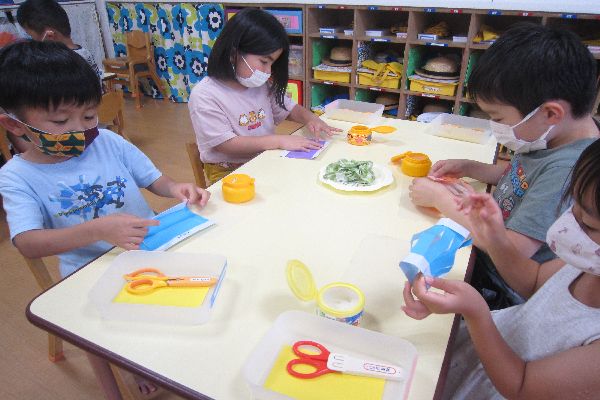 七夕飾りのちょうちんを作りました! 難しいところもあったけど、とっても頑張っていました☆彡