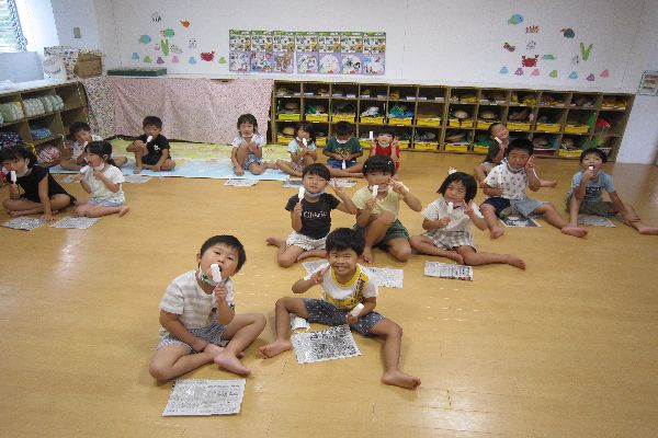 今日で夏季保育が終わりで、アイスも最後なのでとても残念がっていましたが、