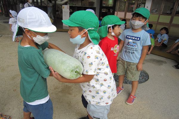 冬瓜は大きかったので、みんなで持ってみました!