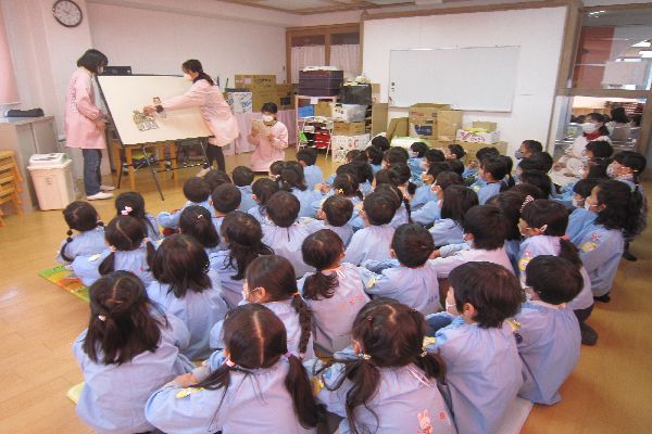 幼稚園では、パネルシアターをみました。 おうちでも話を聞いてみてください!