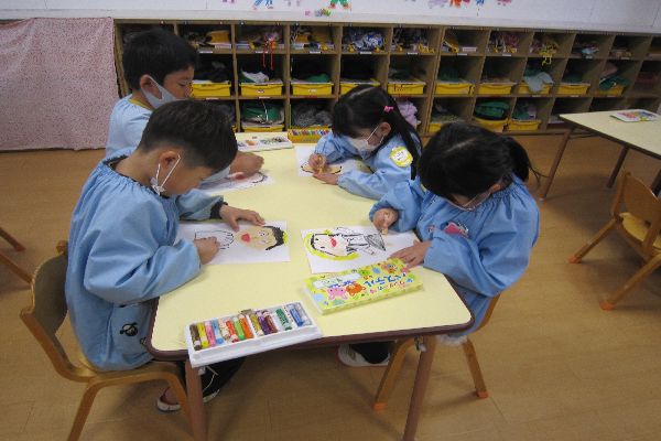 今日は、もすうぐ小学生という事で、小学生になった自分の姿を描きました!