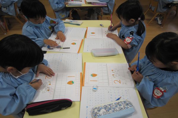 数字の1と2をしました!鉛筆の持ち方や姿勢に気を付けながら頑張りました☆