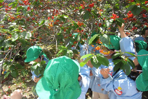 2023/05/09 小運動会競技、英語あそび、さくらんぼ収穫