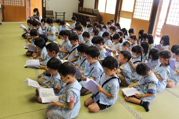 今日は、仏参で品秀寺へお参りにいきました。 初めてのおつとめで「らいはいのうた」を読みました。 その後、園長先生からのお話を聞きました。 おうちでも話を聞いてみてください!