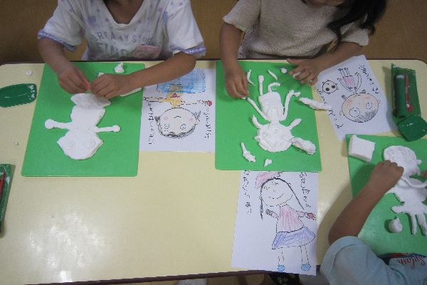 紙粘土の下書きをしました。